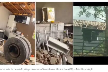 Um pneu que se soltou de um caminhão atingiu uma residência e destruiu a cozinha do imóvel na manhã desta quarta-feira (28), no distrito de Roldão, no município de Morada Nova, no interior do Ceará. O...