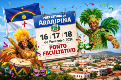 A Prefeitura de Araripina publicou o Decreto nº 017, de 4 de fevereiro de 2026, que estabelece ponto facultativo nos dias 16, 17 e 18 de fevereiro de 2026, em razão das festividades de Carnaval. O dec...