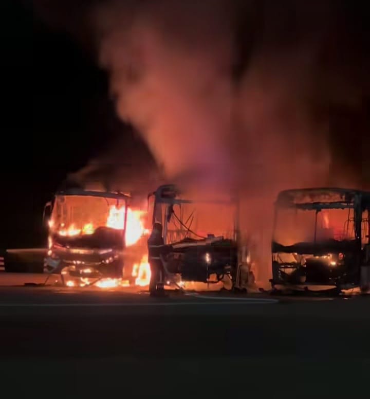 De acordo com informações apuradas pela reportagem, as chamas começaram por volta das 22h e destruíram completamente três ônibus que realizam o transporte escolar no município. Apesar do susto, ninguém ficou ferido. O incêndio causou apenas danos materiais.
