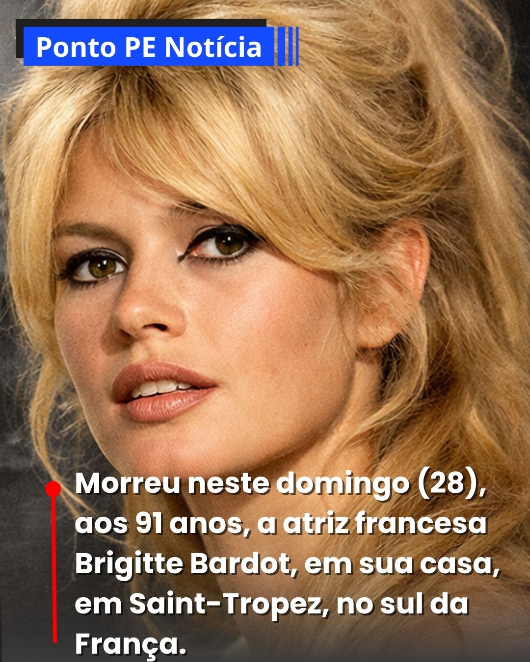 A atriz francesa Brigitte Bardot morreu neste domingo (28), aos 91 anos, em sua casa, localizada em Saint-Tropez, no sul da França. A informação foi confirmada por fontes ligadas à fundação criada pela própria artista.