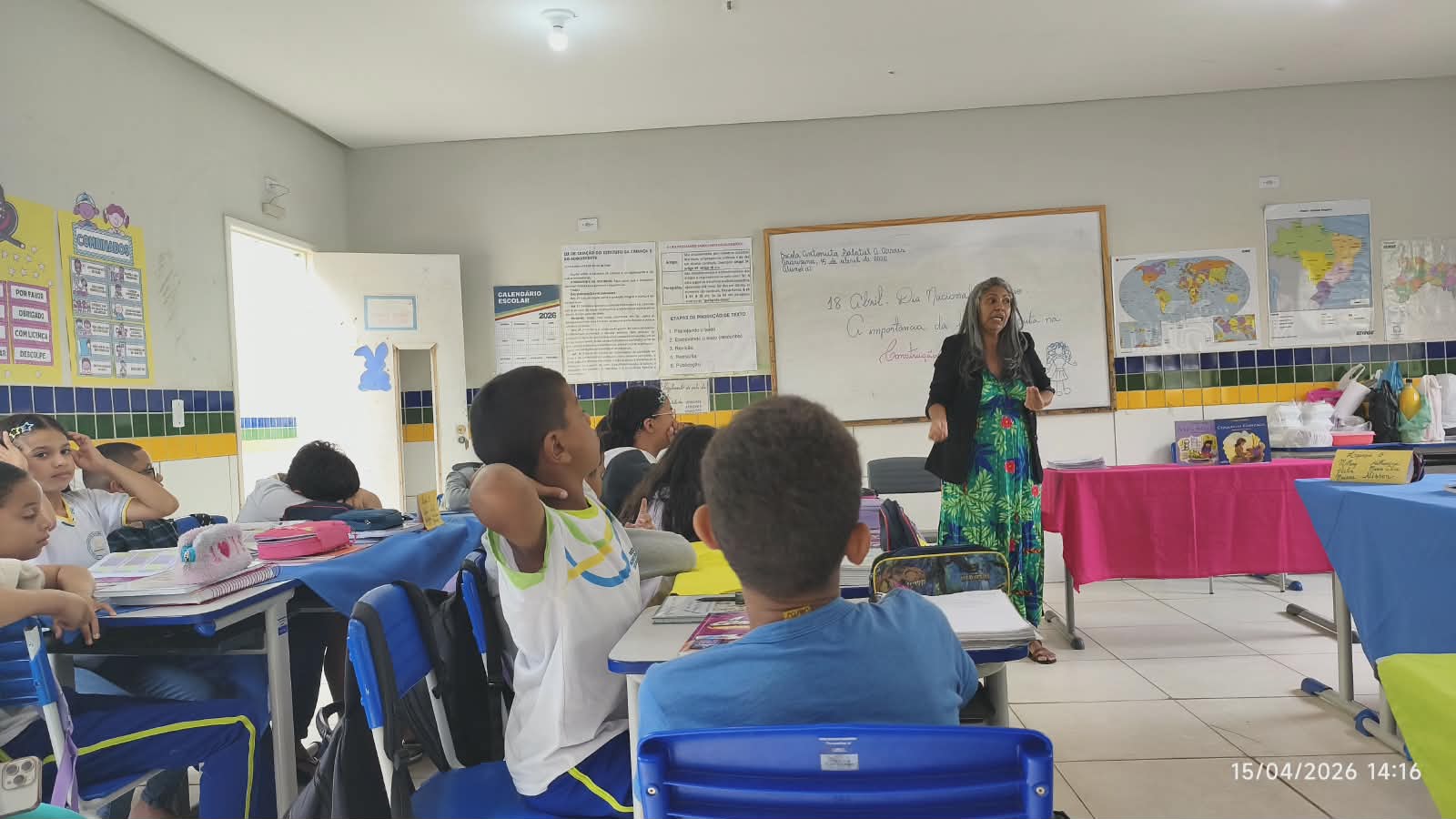 A radialista e produtora cultural Mária Ferreira participou, na tarde desta quarta-feira (15), de um momento formativo com estudantes do 5º ano da Escola Antonieta Salatiel Alencar Arraes, em Araripina.